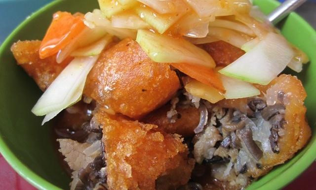 Bánh rán ăn kèm với nước chấm đu đủ thái lát